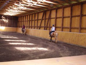 Ob strahlender Sonnenschein, strömender Regen, pfeifender Wind oder eisiger Schnee. Unsere kleine Reithalle bietet bei jeder Wetterlage eine angenehme Reitatmosphäre und sorgt mit ihren beiden großen Fenstern für einen weitläufigen Blick in die den Pferdehof umgebende Natur. Außerdem steht ein Außenreitplatz zur Verfügung, der bei schönem Wetter eine gute Alternative zur Reithalle darstellt.